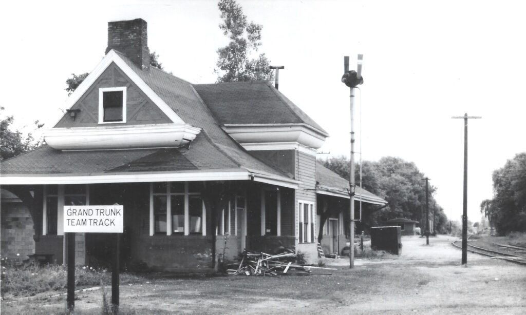 Construction began on a brick-and-stone depot for the Toledo, Saginaw & Mackinaw Railroad (TS&M), which later became the Grand Trunk Western branch