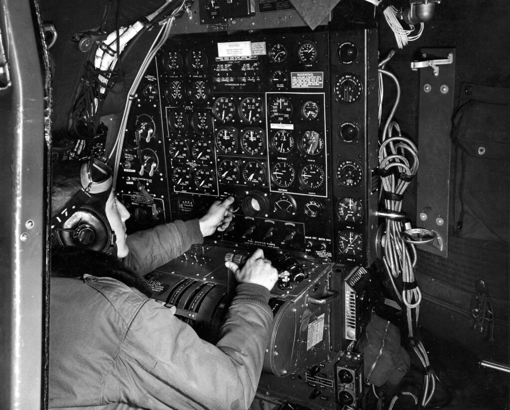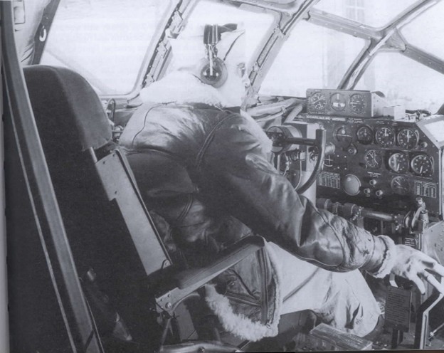 Pilot of a B-29 at the controls
