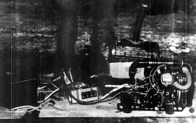 B-29 fuel system after removal from the crashed aircraft, undergoing testing