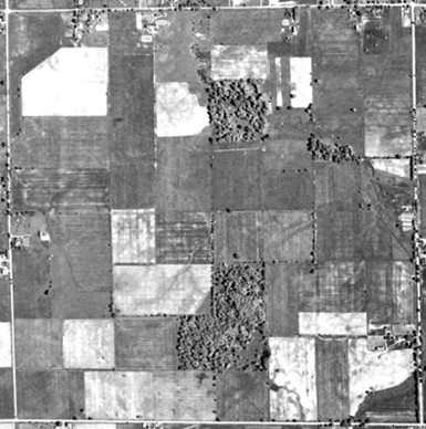 May 1953 aerial of the crash location shows no visual marks from the crash